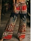 Damen Weites Bein Hosen Hose Urlaub Mode Boho Volle Länge Mittlere Taille Blumen Tasche Elastischer Bund Druck Bequem Atmungsaktivität Unelastisch Täglich Outdoor Urlaub Rote Sommer Frühling Herbst