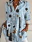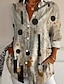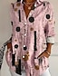 Damen Hemd Leinenähnlich Atmungsaktiv Leicht Button-Down Tunika Hemdkragen Lange Ärmel Geometrisch Abstrakt Vintage Täglich Stylish Arbeit Täglich Urlaub Druck Schwarz und Weiß Pink Blau Lila Grün