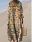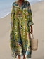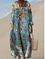 Damen Maxikleid Leinenartig Atmungsaktiv Leicht Kaftan 3/4-Langarm Rundhalsausschnitt Lässiges Kleid A-Linie Kleid Boho Reguläre Passform Grafik Abstrakt Weiß Blau Grün Khaki Frühling Herbst