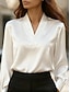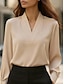 Damenbluse aus Satin, einfarbig, elegant, stilvoll, für Büro und Freizeit, langärmelig, V-Ausschnitt, reguläre Passform, schwarz, weiß, rosa, khaki, für Frühling und Herbst
