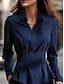 Damen Hemd Elegant Satin-Top Bluse Gerafft Knöpfe Drapiert Einfarbig Einfach Elegant Vintage Damen Langarm Hemdkragen Normale Oberteile Täglich Arbeit Ferien Blau Silber Schwarz Weiß Champagner Sommer