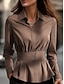 Damen Hemd Elegant Satin-Top Bluse Gerafft Patchwork Knöpfe Grafik Einfach Elegant Vintage Täglich Langarm Hemdkragen Normale Oberteile Täglich Arbeit Ferien Khaki Grau Frühling Herbst