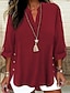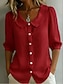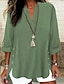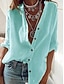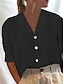Damen Popover-Hemd Freizeithemd Bluse Einfarbig Elegant Urlaub Stilvoll Dreiviertelarm V Ausschnitt Normale Oberteile Arbeit Strand Ferien Blau Schwarz Weiß Rote Purpur Sommer Frühling Herbst Winter