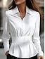 Damen Popover-Hemd Freizeithemd Bluse Knöpfe Einfarbig Elegant Stilvoll Formell Langarm Umlegekragen Normale Oberteile Täglich Arbeit Ferien Schwarz Weiß Marineblau Braun Frühling Herbst