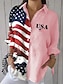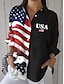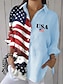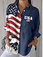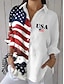 Amerikanischer Unabhängigkeitstag Damen Hemd Knöpfe Druck Grafik Amerikanische Flagge Vintage Stilvoll Modern Langarm Hemdkragen Normale Oberteile Täglich Arbeit Blau Weiß Rote Sommer Frühling