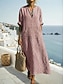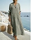 Damen Normal Maxikleid Kunstbaumwollleinen Kaftan Kleid Vintage-Kleid Stilvoll Lässig Täglich Arbeit Lässiger Schnitt Gestreift Langarm V Ausschnitt Rote Grün Grau Frühling Herbst