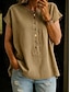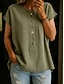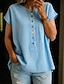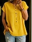 Damen T Shirt Sommeroberteile Knöpfe Einfarbig Elegant Vintage Mode Kurzarm Rundhalsausschnitt Normale Oberteile Täglich Outdoor Streetwear Hellblau Weiß Gelb Rosa Marineblau Sommer Frühling