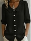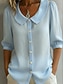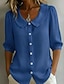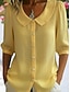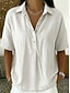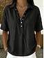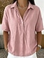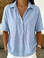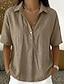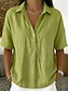 Damen Baumwoll-Leinen-Hemden Sommeroberteile Bluse Elegante Oberteile Gerafft Patchwork Tasche Einfarbig Einfach Elegant Vintage Damen Dreiviertelarm Hemdkragen Normale Oberteile Täglich Arbeit
