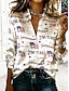 Damen Shirt Leinenähnlich Atmungsaktiv Leicht Button Down Tunika Shirt Kragen Lange Ärmel Katze Lässig Regelmäßige Oberteile Arbeit Alltag s Druck Weiß Frühling Herbst Winter