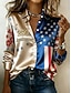 Amerikanischer Unabhängigkeitstag Damen Hemd Knöpfe Druck Grafik Amerikanische Flagge Vintage Stilvoll Modern Langarm Hemdkragen Normale Oberteile Täglich Arbeit Blau Rote Beige Sommer Frühling