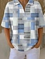 Damen Hawaiian Hemden Fließende Tops Vintage Lässig Grafik Geometrisch Lange Tops Langarm Hemd Kragen Patchwork Knöpfe Druck Form Fit Urlaub Arbeit Täglich Hellblau Sommer Urlaub Bekleidung