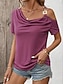 Damen Hemd Schulterfreies Oberteil Bluse Asymmetrisch Einfach Stilvoll Klassisch Modern Kurzarm Wasserfallausschnitt Normale Oberteile Täglich Ferien Ausgehen Fuchsie Sommer Frühling