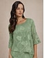 Damen Transparente Bluse Chiffon Tops Spitze Asymmetrischer Saum Blumen Elegant Dreiviertelarm Rundhalsausschnitt Normale Oberteile Täglich Hochzeitsgast Wedgewood Sommer Frühling Herbst