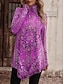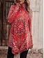 Damen Hemd Bluse Langarm-Tops Asymmetrischer Saum Blumen Stilvoll Klassisch Modern Langarm Hoher Ausschnitt Lange Oberteile Täglich Ferien Ausgehen Blau Rote Purpur Frühling Herbst
