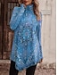 Damen T-Shirt Lange Ärmel Fashion Blumen Druck Asymmetrischer Saum Lange Oberteile Hoher Hals Lässig Urlaub Blau Grün Grau Frühling Herbst Vorsaison