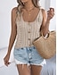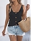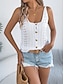 Damen Camisole-Tanktop Ausgehöhlt Knöpfe Einfarbig Elegant Stilvoll Ärmellos Quadrathals Normale Oberteile Täglich Ferien Ausgehen Schwarz Weiß Khaki Sommer Frühling