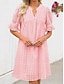 Damen Bluse Baumwollhemd Ausgehöhlt Einfarbig Täglich Stilvoll Basic Dreiviertelarm Rundhalsausschnitt Normale Oberteile Täglich Weiß Rosa Sommer Frühling Herbst