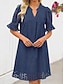 Damen Bluse Hemd aus Leinenimitat Ausgehöhlt Einfarbig Täglich Basic Lässig Dreiviertelarm V Ausschnitt Normale Oberteile Täglich Blau Schwarz Weiß Gelb Grün Sommer Frühling Herbst