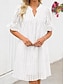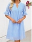 Damen Minikleid Baumwoll Mischung Shiftkleid Freizeitkleid Basic Modern Täglich Urlaub Ferien Lässiger Schnitt Einfarbig Halbarm V Ausschnitt Weiß Staubiges Blau Grün Sommer Frühling