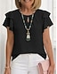 Damen Bluse Oberteil mit Ösen Spitzentops Ausgehöhlt Einfach Täglich Stilvoll Basic Kurzarm Rundhalsausschnitt Normale Oberteile Täglich Arbeit Ferien Schwarz Weiß Orange Sommer Frühling