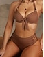 Damen Badeanzug Bikini Zweiteilig Bademode Ausschnitt Rückenfrei Urlaub Strandbekleidung Einfach Neckholder Ärmellos Badeanzüge