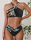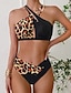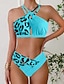 Damen Badeanzug Zweiteilig Freche Unterhose Bademode Ausschnitt Rückenfrei Urlaub Strandbekleidung Leopard Neckholder Ärmellos Badeanzüge