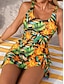 Damen Tankini 2-teiliges Badeanzug Palm Boy Leg Bauchkontrolle Hohe Taille Schlank Rücklos Urlaub Strandbekleidung Florales Sonnenblumen V-Ausschnitt Ärmelloses Badeanzug