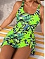 Damen Tankini 2-teiliger Badeanzug Palm Shorts Bauchkontrolle Hohe Taille Slim Rückenfrei Urlaub Strandbekleidung Floral Blätter Halfterhals Ärmellos Badeanzüge