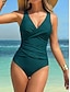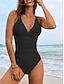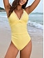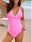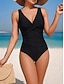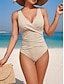 Damen Einteiler Badeanzug Raffung Monokini Slips Bauchkontrolle Hohe Taille Schlank Rückenfrei Urlaub Strandbekleidung Einfarbiger V-Ausschnitt Ärmelloses Badeanzüge