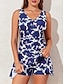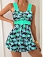 Damen Badeanzug Tankini Badeanzugkleid Shorts Bademode Bauchkontrolle Hohe Taille Schlank Rückenfrei Urlaub Strandbekleidung Blumen V Ausschnitt Ärmellos Badeanzüge