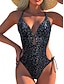 Damen Badeanzug Einteiler Monokini Badeanzugkleid Bademode Bauchkontrolle Hohe Taille Schlank Rückenfrei Urlaub Strandbekleidung Leopard Farbblock V Ausschnitt Ärmellos Badeanzüge