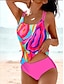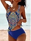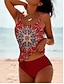 Damen Badeanzug Tankini Zweiteilig Freche Unterhose Bademode Bauchkontrolle Hohe Taille Schlank Urlaub Strandbekleidung Grafik Tropisch U-Ausschnitt Ärmellos Badeanzüge