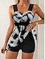 Damen Bademode Schwimmdresses 1-teilig Tankini Badeanzug Rückenfrei Bauchkontrolle hohe Taille schlank Urlaub Strandbekleidung grafischer V-Ausschnitt ärmellose Badeanzüge