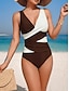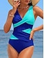 Damen Einteiler Badeanzug Schlankmachend Colorblock Monokini Slips Bauch Kontrolle Hohe Taille Slim Rückenfrei Elegant Urlaubs Farbblock V-Ausschnitt Ärmellos Bademode