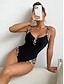 Damen Einteiler Badeanzug Raffung Monokini Slips Bauchkontrolle Hohe Taille Schlank Rückenfrei Urlaub Strandbekleidung Einfarbiger V-Ausschnitt Ärmelloses Badeanzüge