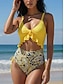 Damen Tankini 2-teiliges Badeanzug Palm Boy Leg Bauchkontrolle Hohe Taille Schlank Rücklos Urlaub Strandbekleidung Florales Sonnenblumen V-Ausschnitt Ärmelloses Badeanzug
