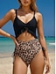 Damen Badeanzug Einteiler Monokini Badeanzugkleid Bademode Bauchkontrolle Hohe Taille Schlank Rückenfrei Urlaub Strandbekleidung Leopard Farbblock V Ausschnitt Ärmellos Badeanzüge