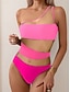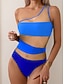 Damen Einteiler Badeanzug Sexy Cutout Ein-Schulter Monokini Bauchkontrolle Hohe Taille Schlank Rückenfrei Elegant Ferien Einfarbig Asymmetrischer Hals Ärmellose Badeanzüge