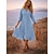Damen-Midikleid aus Baumwolle und Leinen, A-Linien-Kleid, ideal für Sommer, Urlaub, Party, Freizeit, Büro, Strand, lockere Passform, schlichte Passform, halbe Ärmel, V-Ausschnitt, hellblau, schwarz,