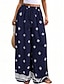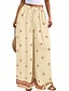 Damen Weites Bein Hosen Hose Alltagstauglich Lang Blatt Weites Bein Druck Atmungsaktivität Bequem Unelastisch Ausgehen Wochenende Schwarz Weiß Khaki Frühling & Sommer Normale Passform