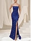 Damen Langes Kleid Maxikleid Satinkleid Partykleid Cocktailkleid Elegantes Kleid Elegant Mode Modern Abendgesellschaft Party Besonderer Anlass Normale Passform Einfach Ärmellos Ein-Schulter Blau