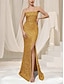 Damen Maxikleid Satinkleid Partykleid Cocktailkleid Elegant Mode Modern Abendgesellschaft Party Hochzeit Normale Passform Einfach Ärmellos Ein-Schulter Blau Schwarz Rosa Grün Sommer Frühling