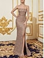 Damen Normal Maxikleid schwarzes kleid Paillettenkleid Cocktailkleid Abendkleid Elegant Stilvoll Maxi Kappe Hochzeit Hochzeitsgast Besonderer Anlass Schlank Einfach Ärmellos Tiefer V-Ausschnitt Rosa