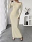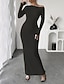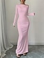 Damen Langes Kleid Maxikleid Abschlussballkleid Partykleid Cocktailkleid Modern Abendgesellschaft Party Besonderer Anlass Normale Passform Einfach Langarm Rundhalsausschnitt Schwarz Weiß Rosa Khaki