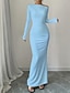 Damen Langes Kleid Maxikleid Abschlussballkleid Partykleid Etui-Kleid Elegant Mode Modern Abendgesellschaft Party Besonderer Anlass Normale Passform Einfach Langarm Hoher Ausschnitt Dunkelblau