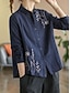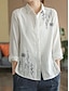 Damen Baumwoll-Leinen-Hemden Bestickt Knöpfe Blumen Vintage Stilvoll Basic Langarm Hemdkragen Normale Oberteile Täglich Blau Weiß Sommer Frühling Herbst