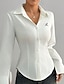 Damen Kleidhemd Knopfhemd Bluse Bestickt Knöpfe Einfarbig Elegant Stilvoll Lässig Langarm Umlegekragen Normale Oberteile Täglich Arbeit Ferien Weiß Sommer Frühling Herbst