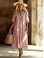 Womens Midi Kleid V-Ausschnitt Lange Ärmeln Kaftan Leicht Loose Fit A-Linie Kleid Lässig Boho Ausgehen Floral Grafik Lange Ärmeln V-Ausschnitt Pink Blau Helllila Fuchsia