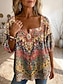 Damen Hemd Boho-Hemd Bluse Bestickt Blumen Grafik Bohemien Vintage Stilvoll Langarm V Ausschnitt Normale Oberteile Täglich Ferien Ausgehen Rosa Sommer Frühling