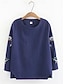 Damen Hemd Baumwoll-Leinen-Hemden Bluse Bestickt Blumen Stilvoll Lässig Langarm Rundhalsausschnitt Normale Oberteile Täglich Blau Weiß Armeegrün Rote Sommer Frühling Herbst